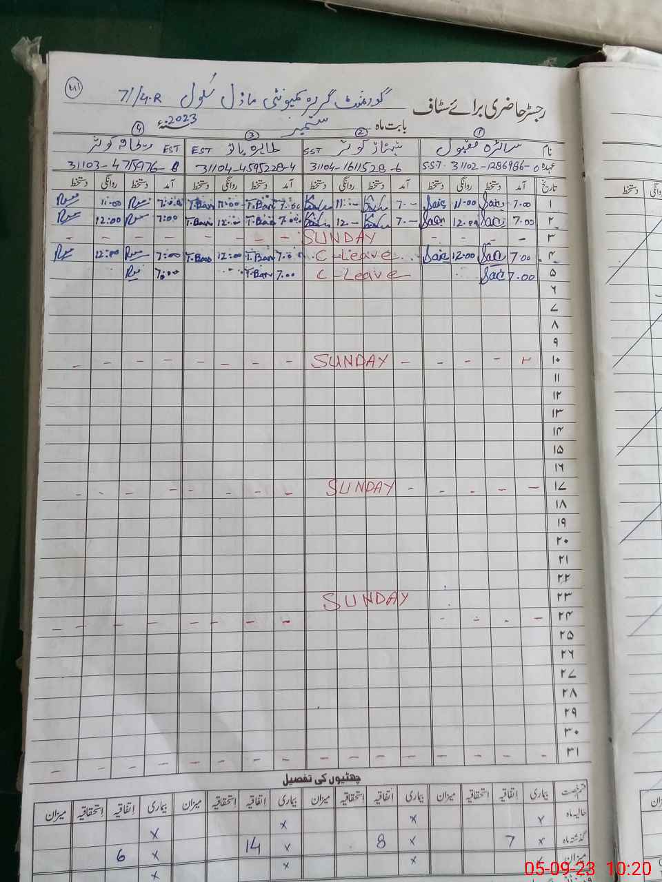 | CNIC | Full Name | Designation | R/C | Absence During Last Calender Month |