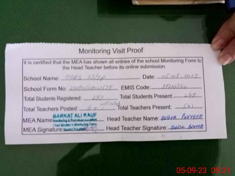 | EMIS Code: 39210340 | Name of School: GGES 23 SP | |||