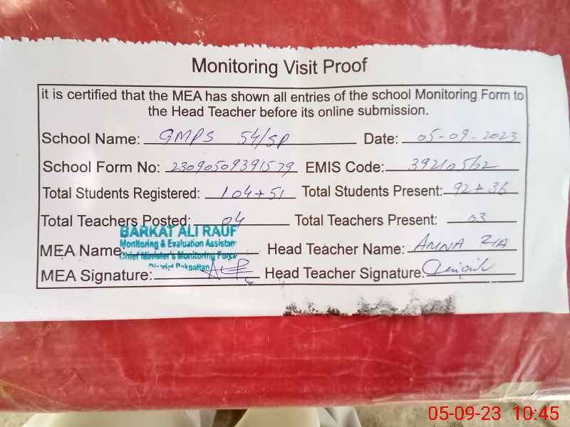 | EMIS Code: 39210562 | Name of School: GMPS 54/SP | |||