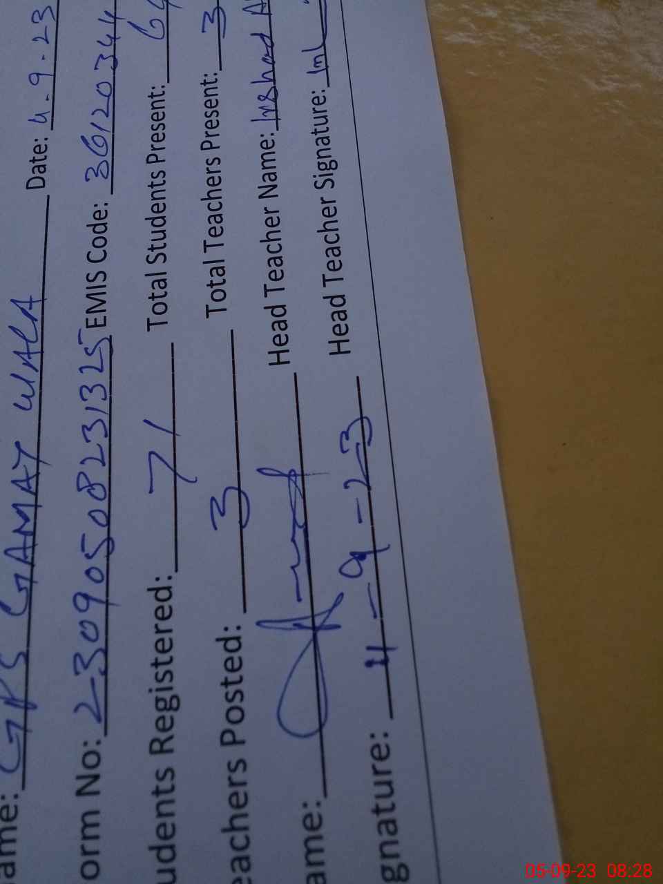 | EMIS Code: 36120344 | Name of School: GPS GAMAY WALA ADDA PIR GHAIB P/O NASEERPUR | |||