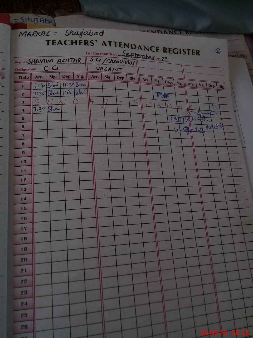 | CNIC | Full Name | Designation | R/C | Absence During Last Calender Month |