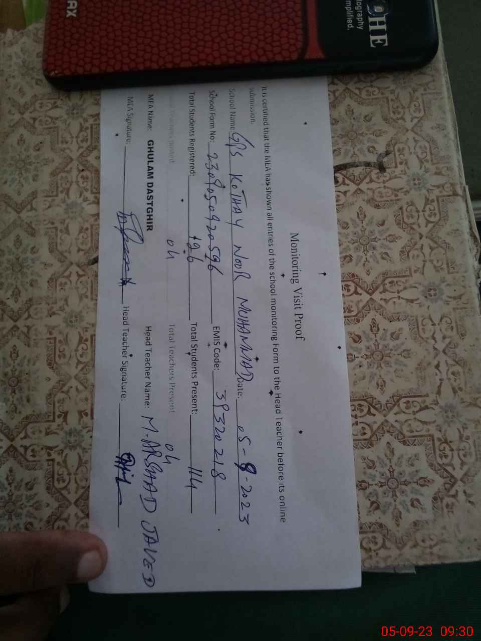 | EMIS Code: 39320218 | Name of School: GPS KOTHAY NOOR MUHAMMAD | |||