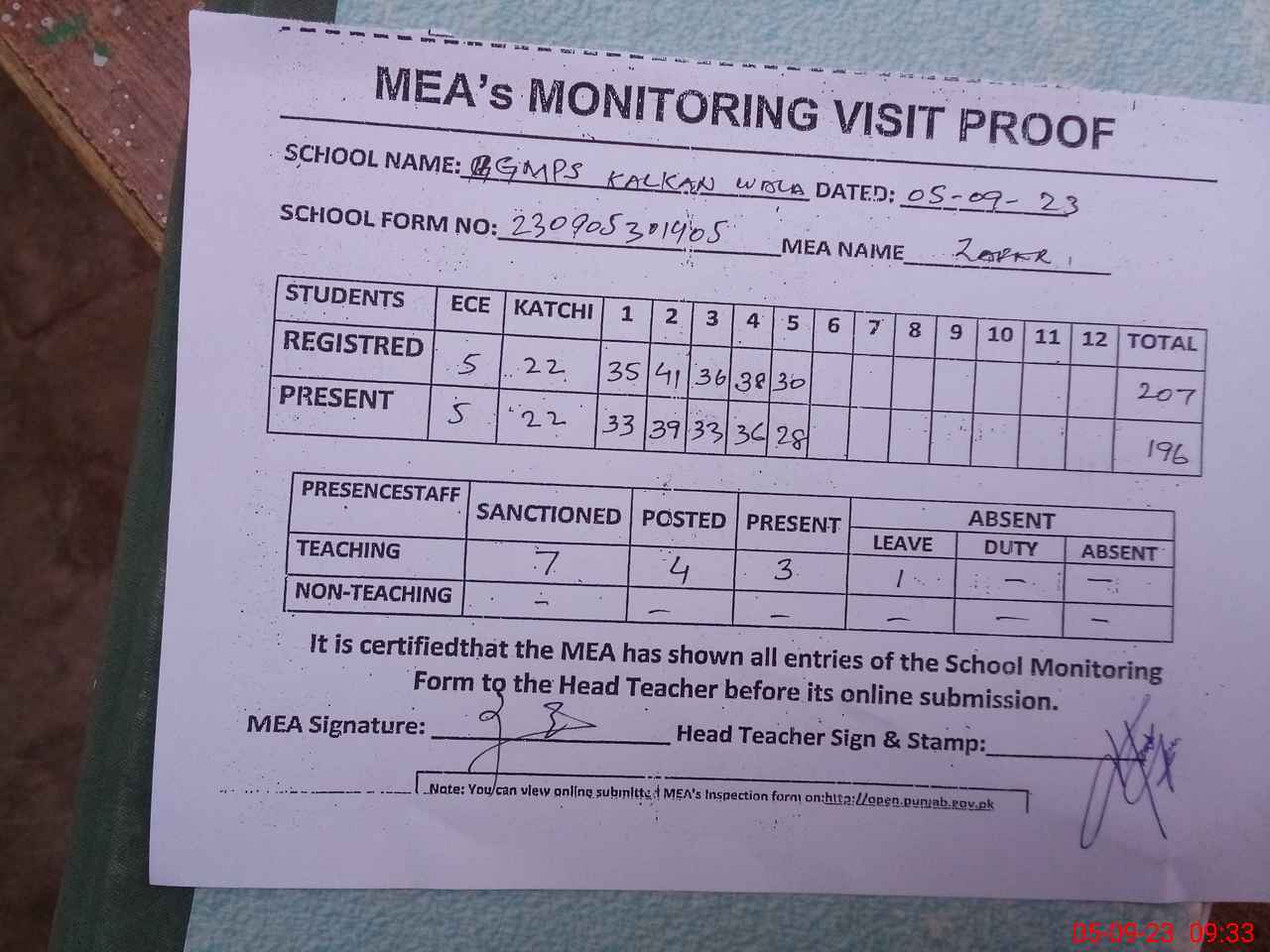 | EMIS Code: 36410464 | Name of School: GMPS KALKAN WALA, ABDUL HAKIM | |||