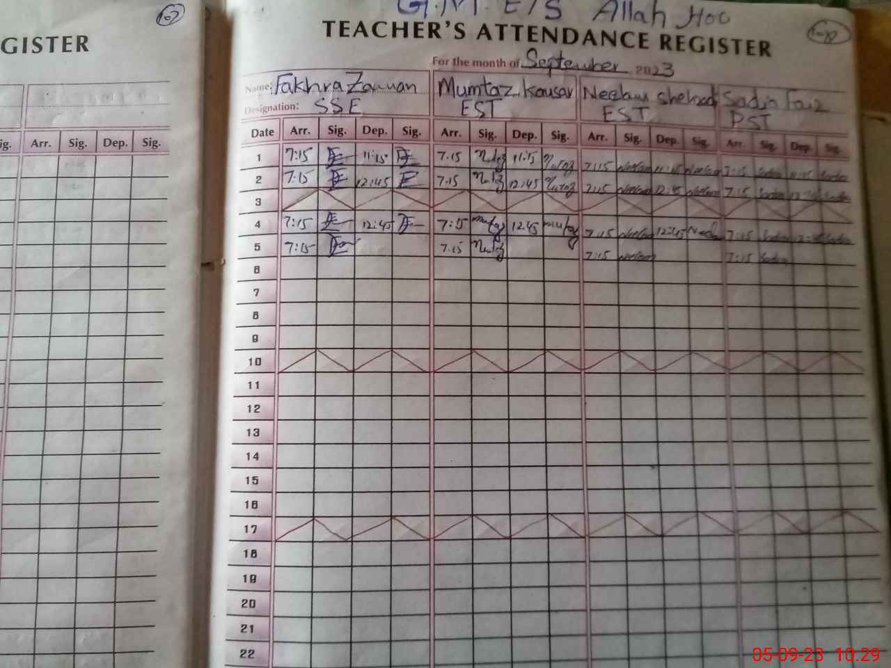 | Name: Fa**** Za**** Designation: (School Headmaster's/Headmistress's) S.S.E (Eng) Phone/Cell Number: 03**** |