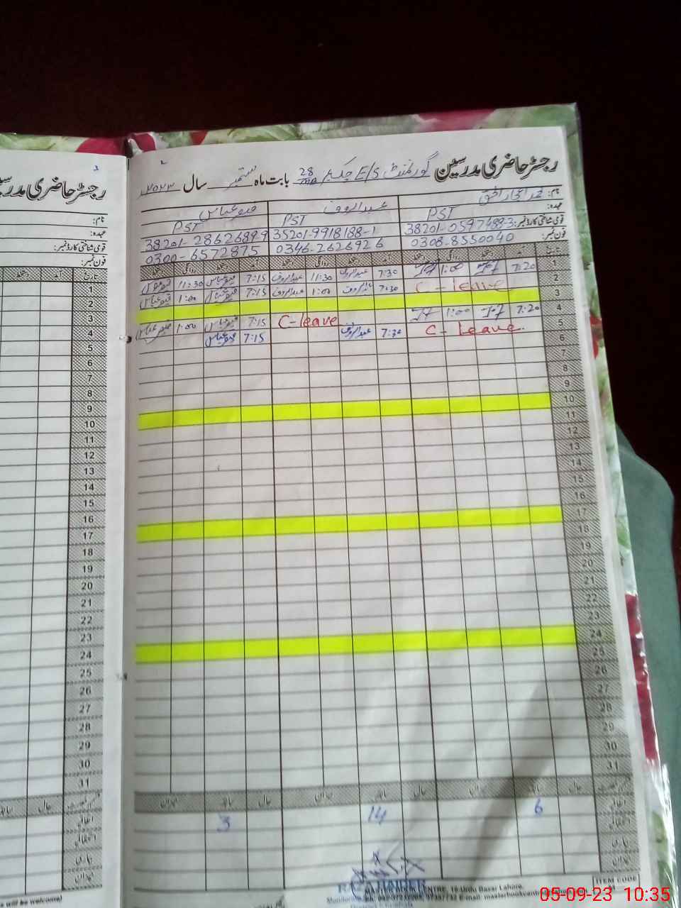 | CNIC | Full Name | Designation | R/C | Absence During Last Calender Month |