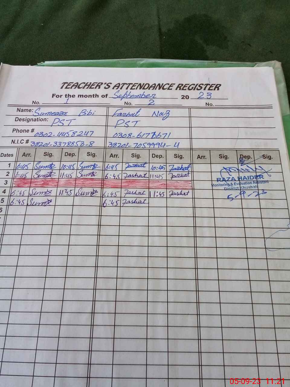 | Name: Su**** Bi**** Designation: (School Headmaster's/Headmistress's) Ese Sci Math Phone/Cell Number: 03**** |