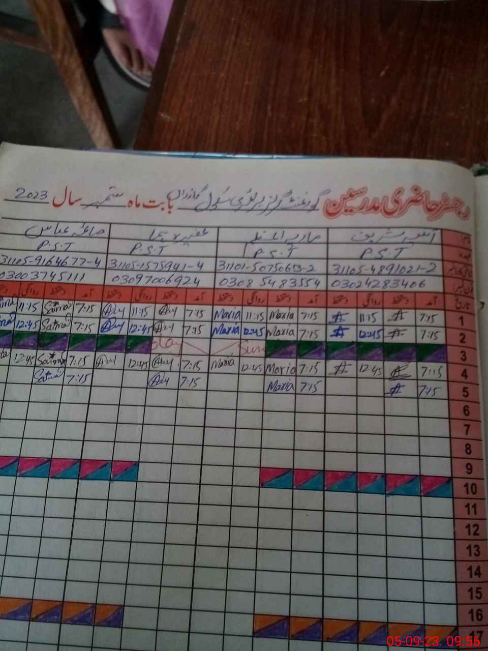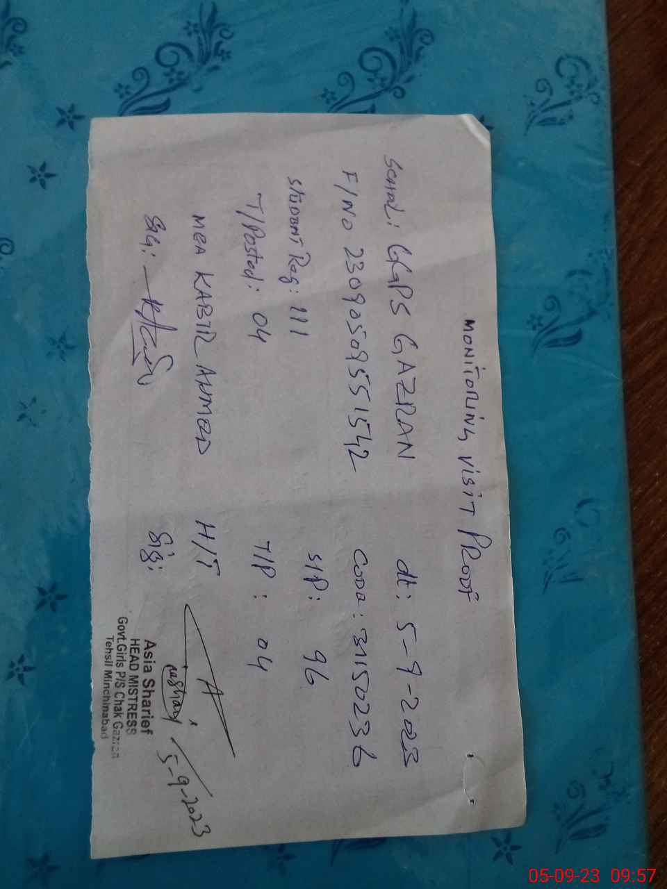 | Name: AS**** SH**** Designation: (School Headmaster's/Headmistress's) PST Phone/Cell Number: 03**** |