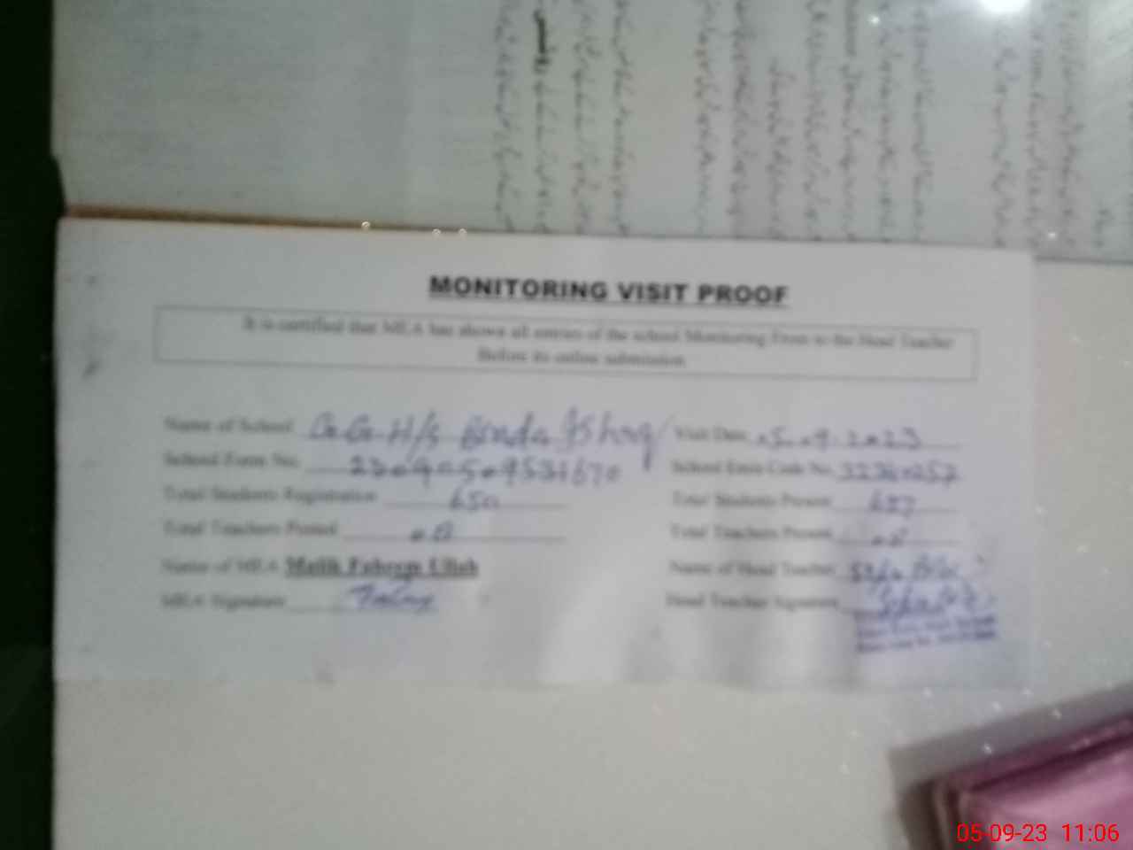 | Attendance Register | Head Teacher | MEA with School | Visit Proof |