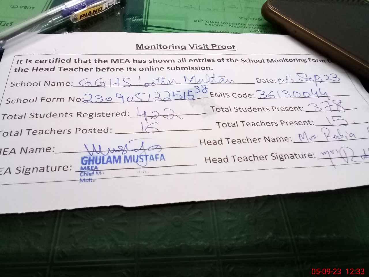 | Monitoring Date: 05-09-2023 | Start Time: 05-09-2023 12:02 PM | End Time: 05-09-2023 12:37 PM | Name of MEA: Gh**** Mu**** | |