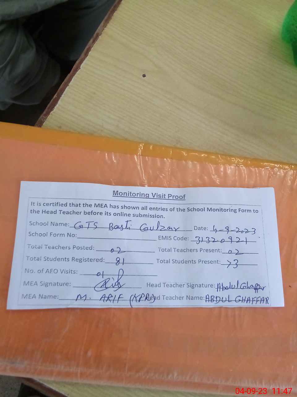 | EMIS Code: 31320921 | Name of School: GPS BASTI GULZAR | |||