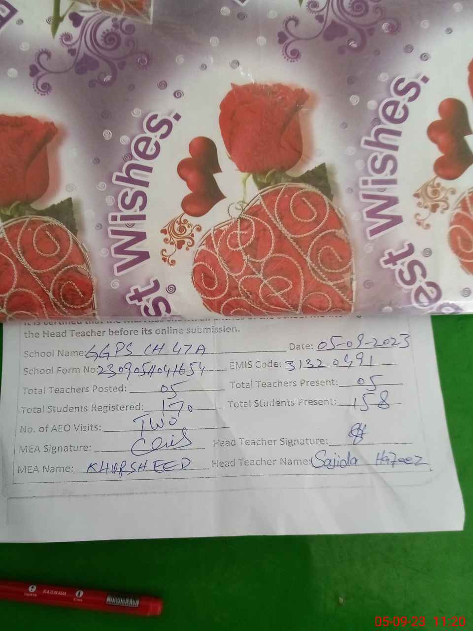 | Attendance Register | Head Teacher | MEA with School | Visit Proof |