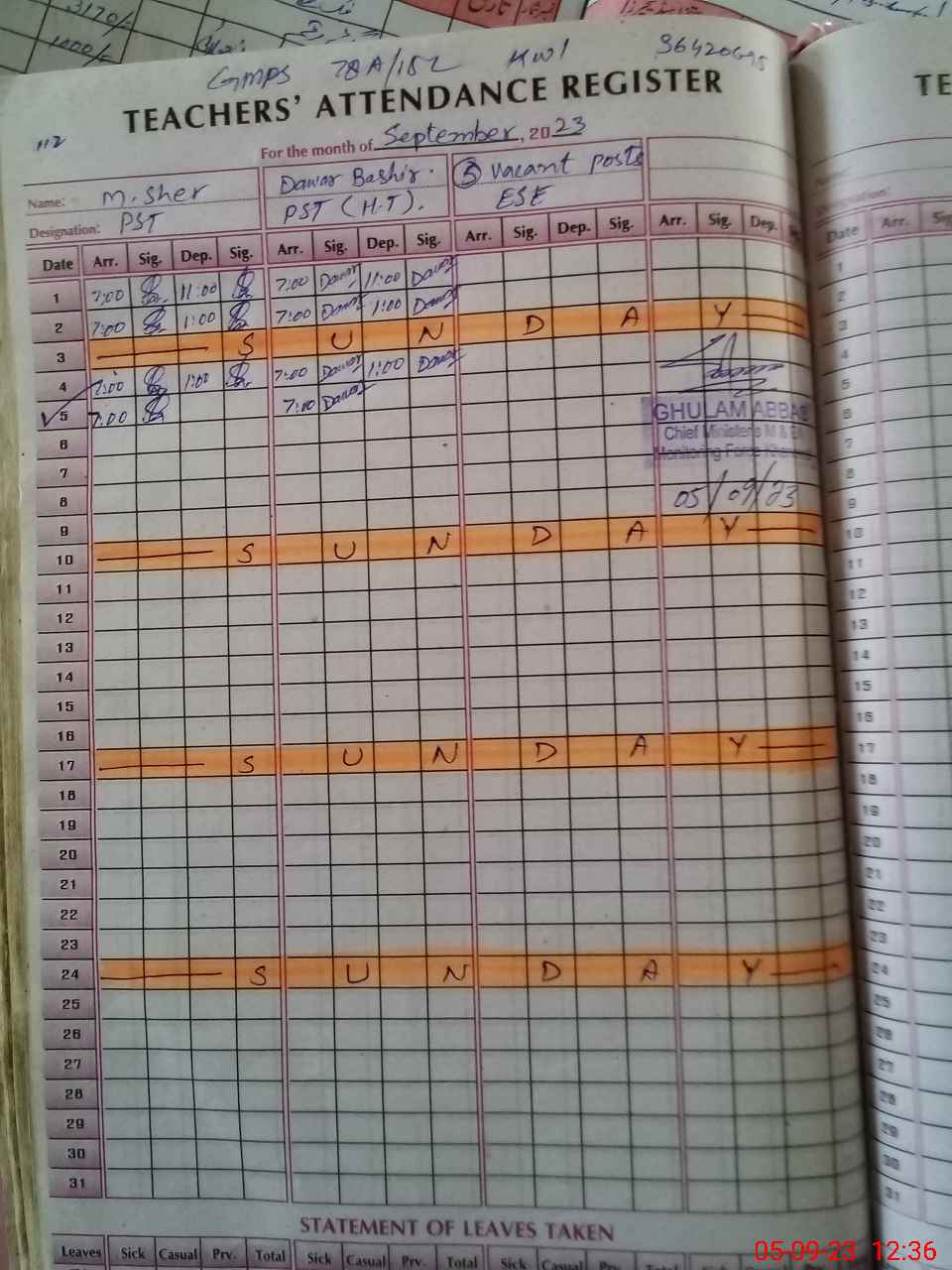 | Name: Da**** Ba**** Designation: (School Headmaster's/Headmistress's) PST Phone/Cell Number: 03**** |