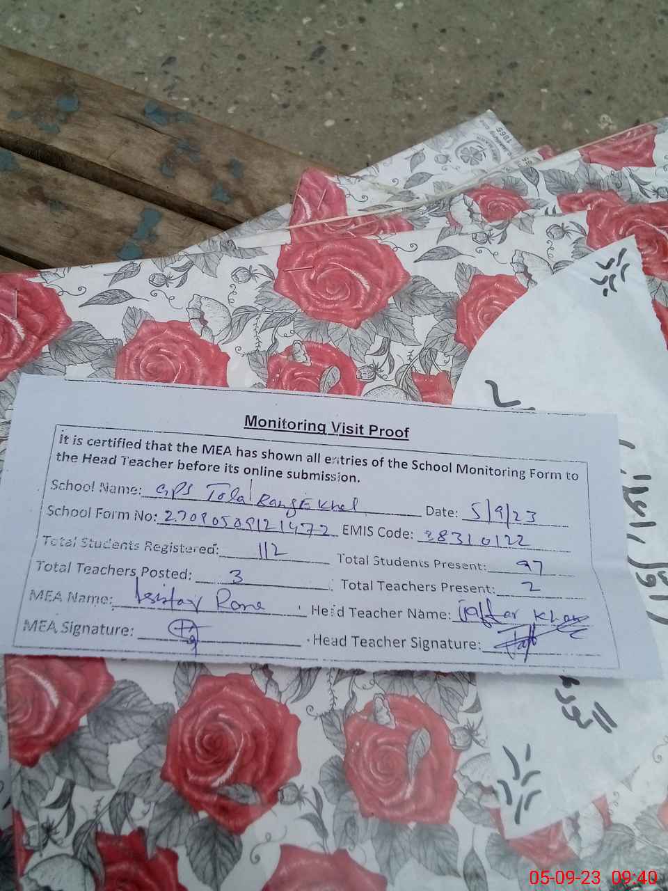 | Attendance Register | Head Teacher | MEA with School | Visit Proof |