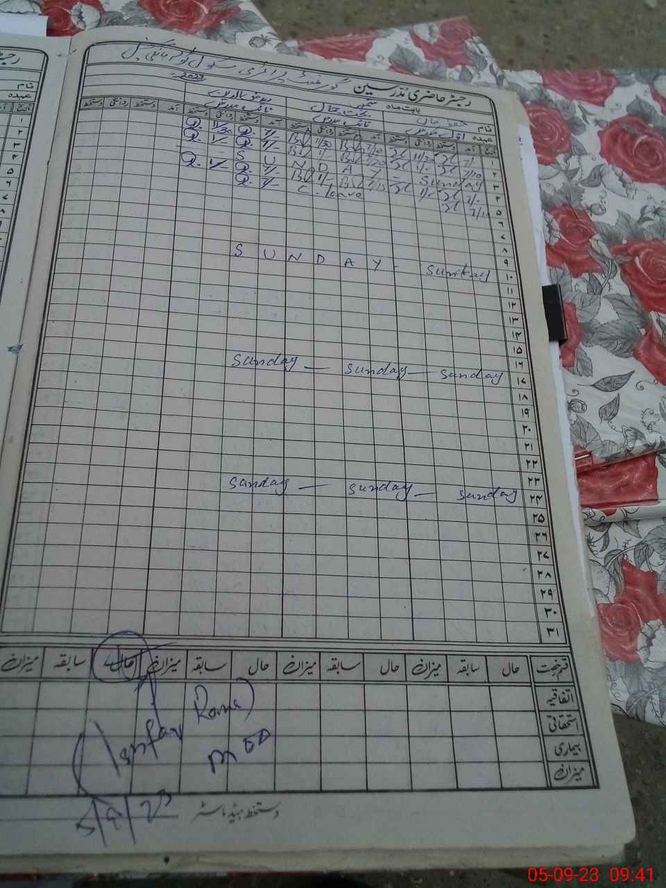 | CNIC | Full Name | Designation | R/C | Absence During Last Calender Month |