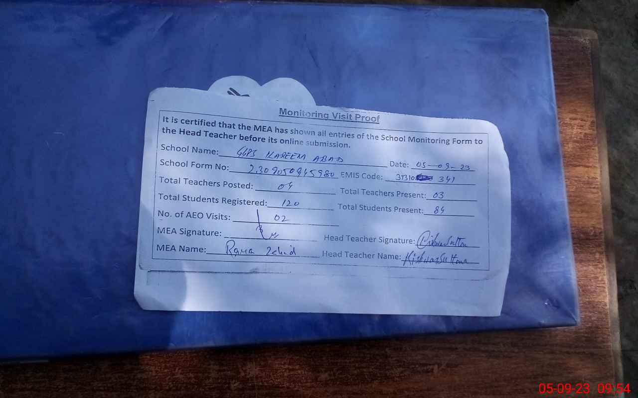 | EMIS Code: 31310341 | Name of School: GGPS KARIM ABAD | |||