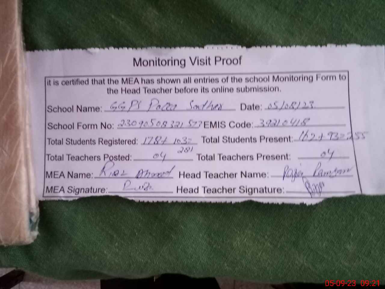 | EMIS Code: 39210418 | Name of School: GGPS PACCA SADHAR | |||