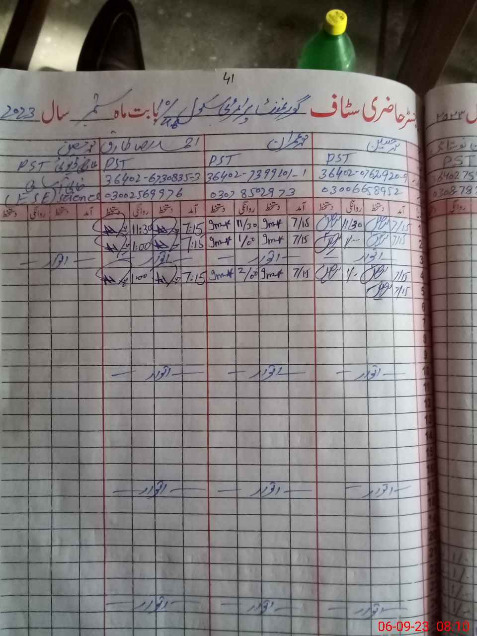 | Name: MU**** HU**** Designation: (School Headmaster's/Headmistress's) PST Phone/Cell Number: 03**** |