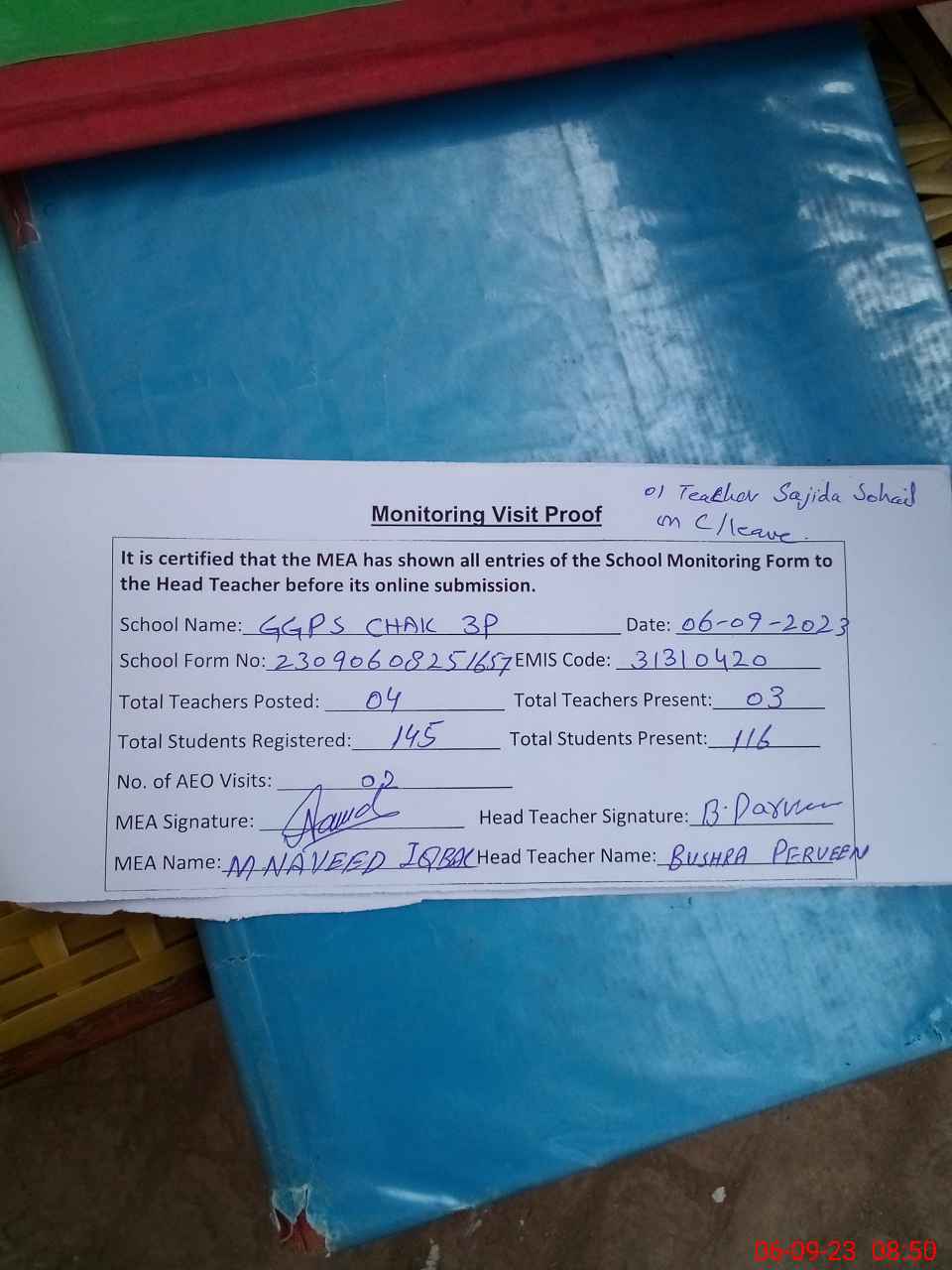 | EMIS Code: 31310420 | Name of School: GGPS CHAK 3/P | |||