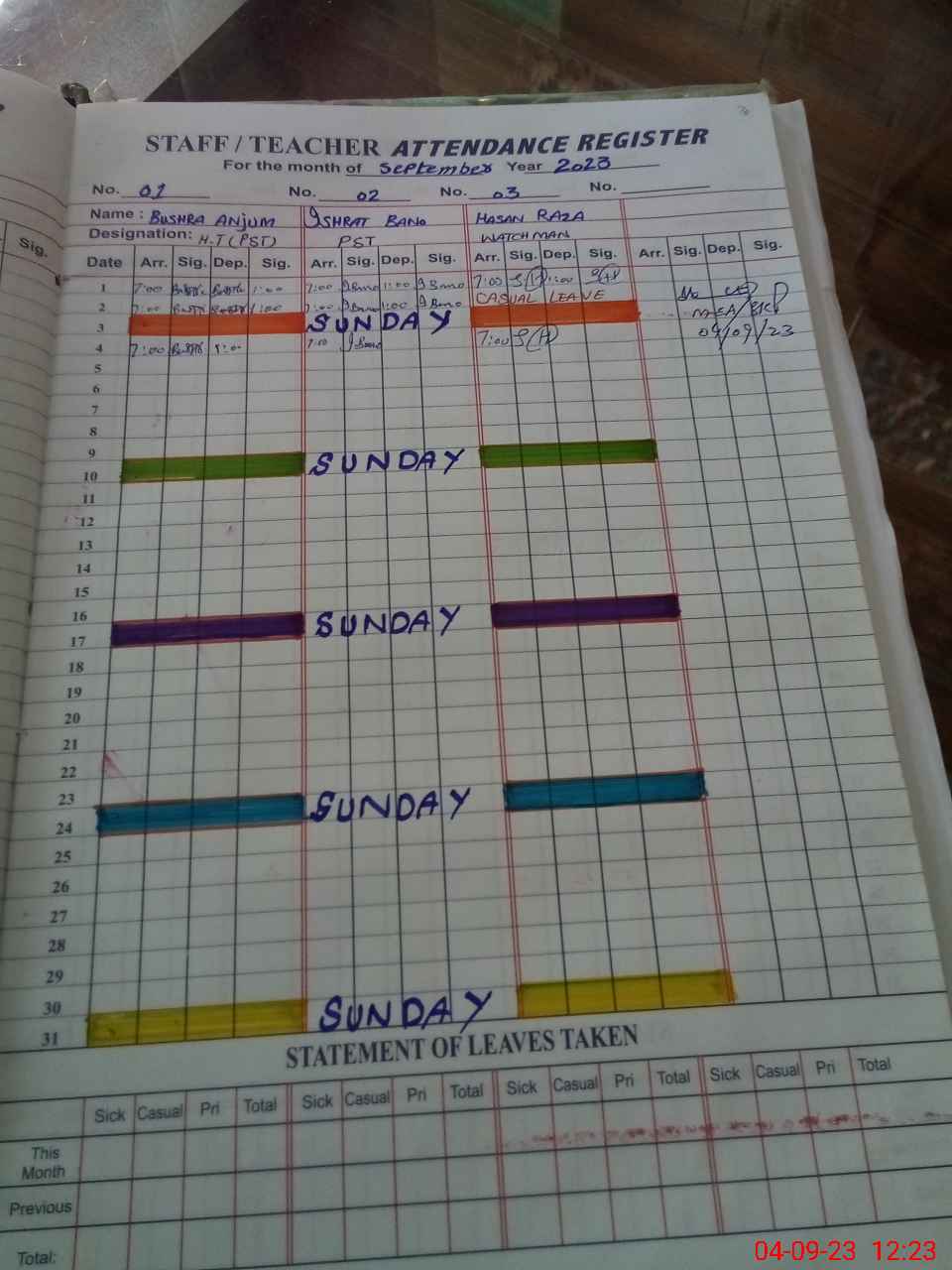 | Leave | Duty | Absent | Maternity | Medical | Ex- Pak |