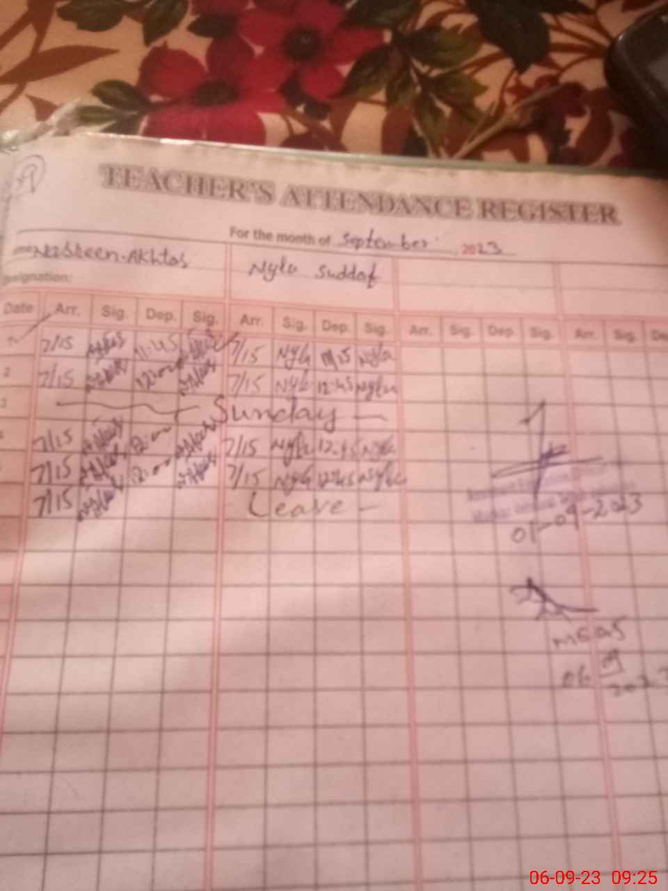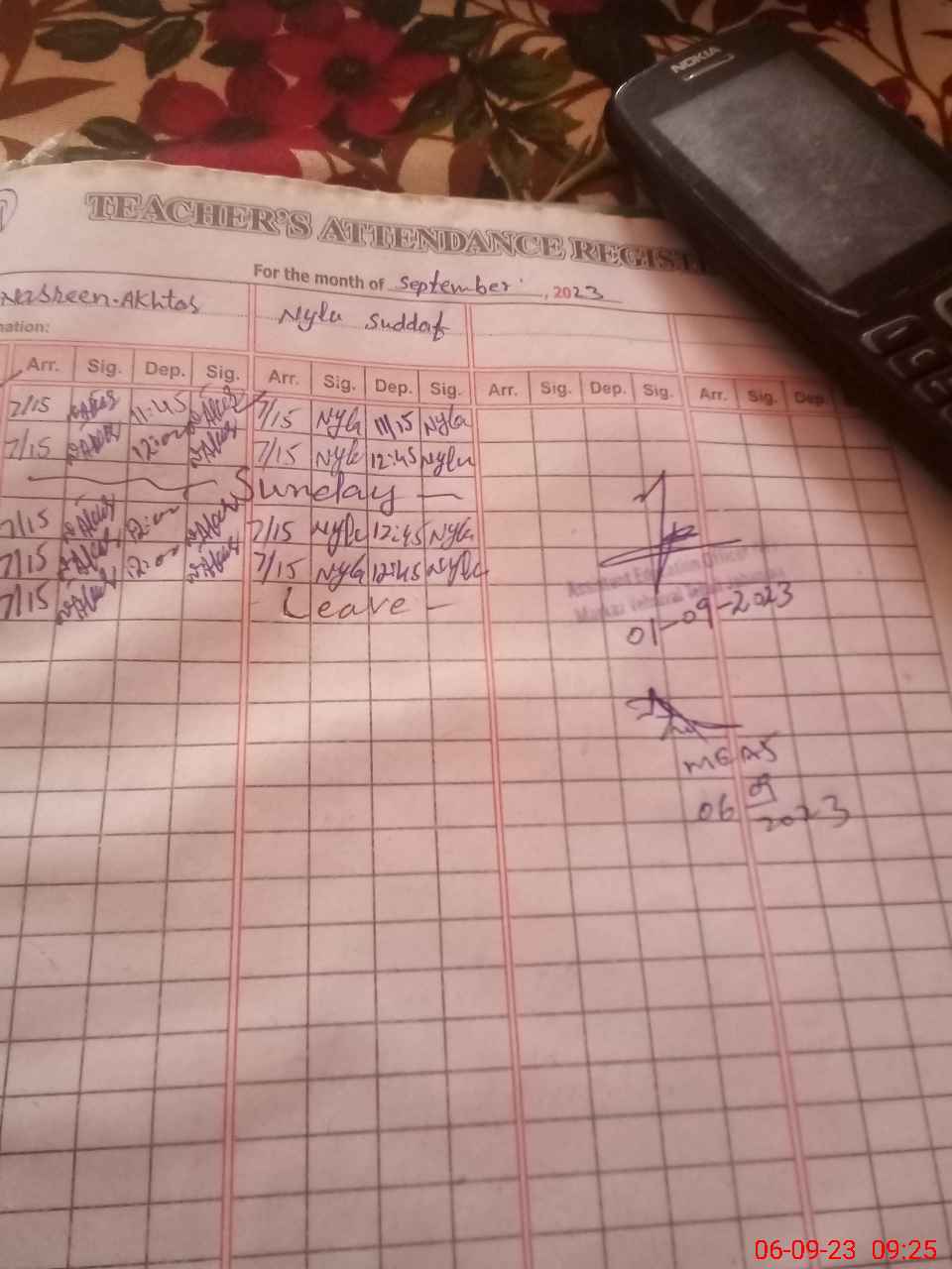 | Monitoring Date: 06-09-2023 | Start Time: 06-09-2023 08:37 AM | End Time: 06-09-2023 09:27 AM | Name of MEA: Ab**** Ja**** (S**** 20**** | |