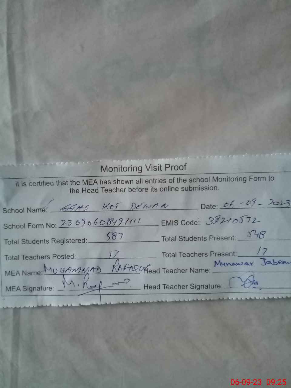 | EMIS Code: 39210572 | Name of School: GGHS KOT DEWAN | |||