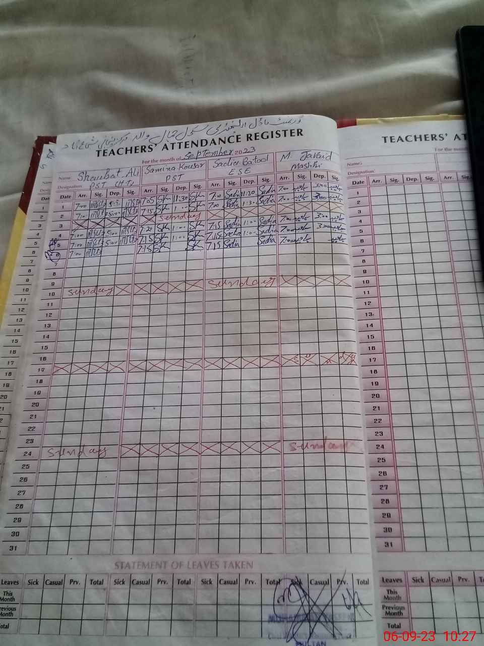 | Name: Sh**** Al**** Designation: (School Headmaster's/Headmistress's) PST/PTC/JV Phone/Cell Number: 03**** |
