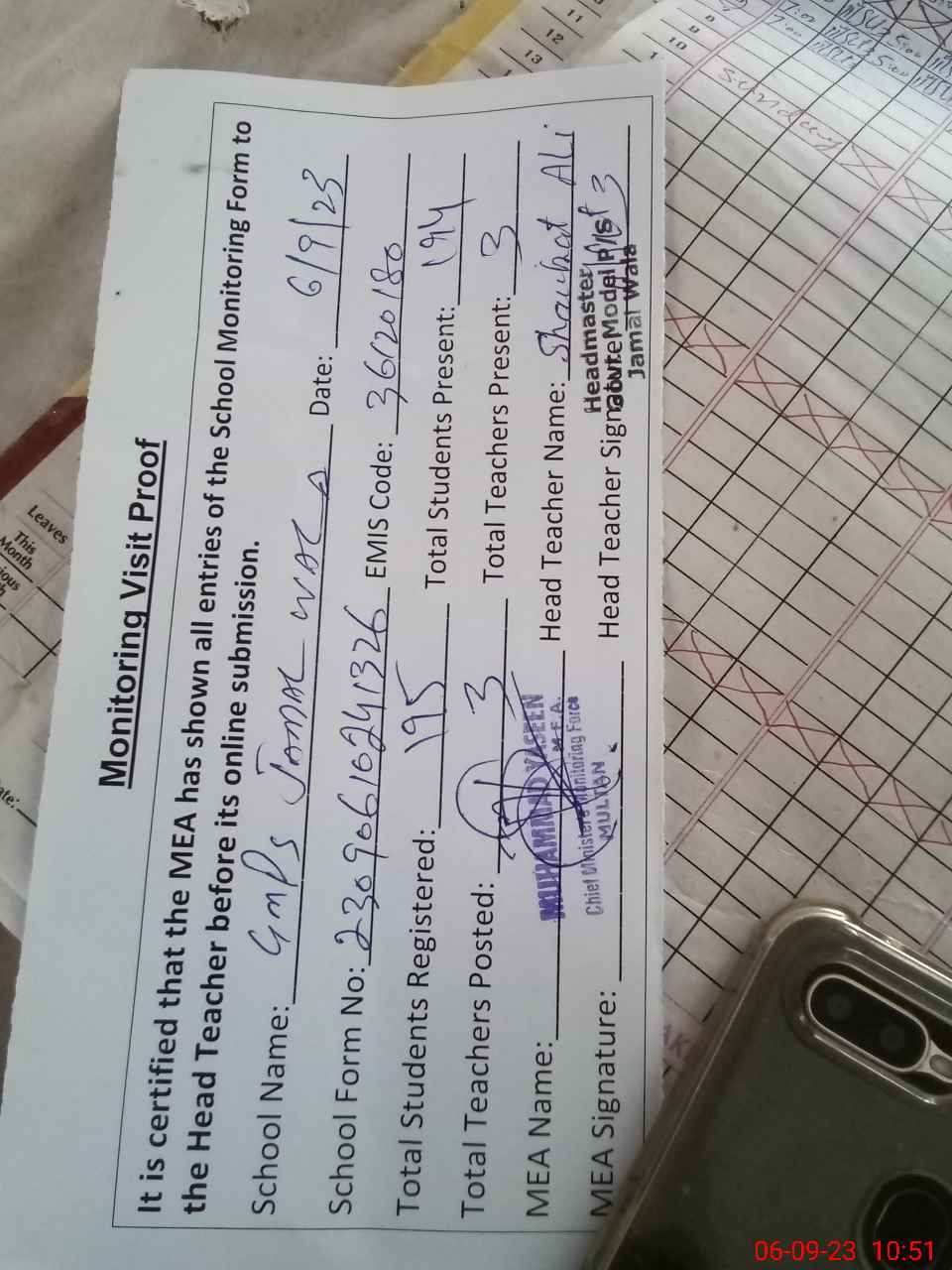 | EMIS Code: 36120180 | Name of School: GMPS JAMAL WALA SHUJABAD | |||
