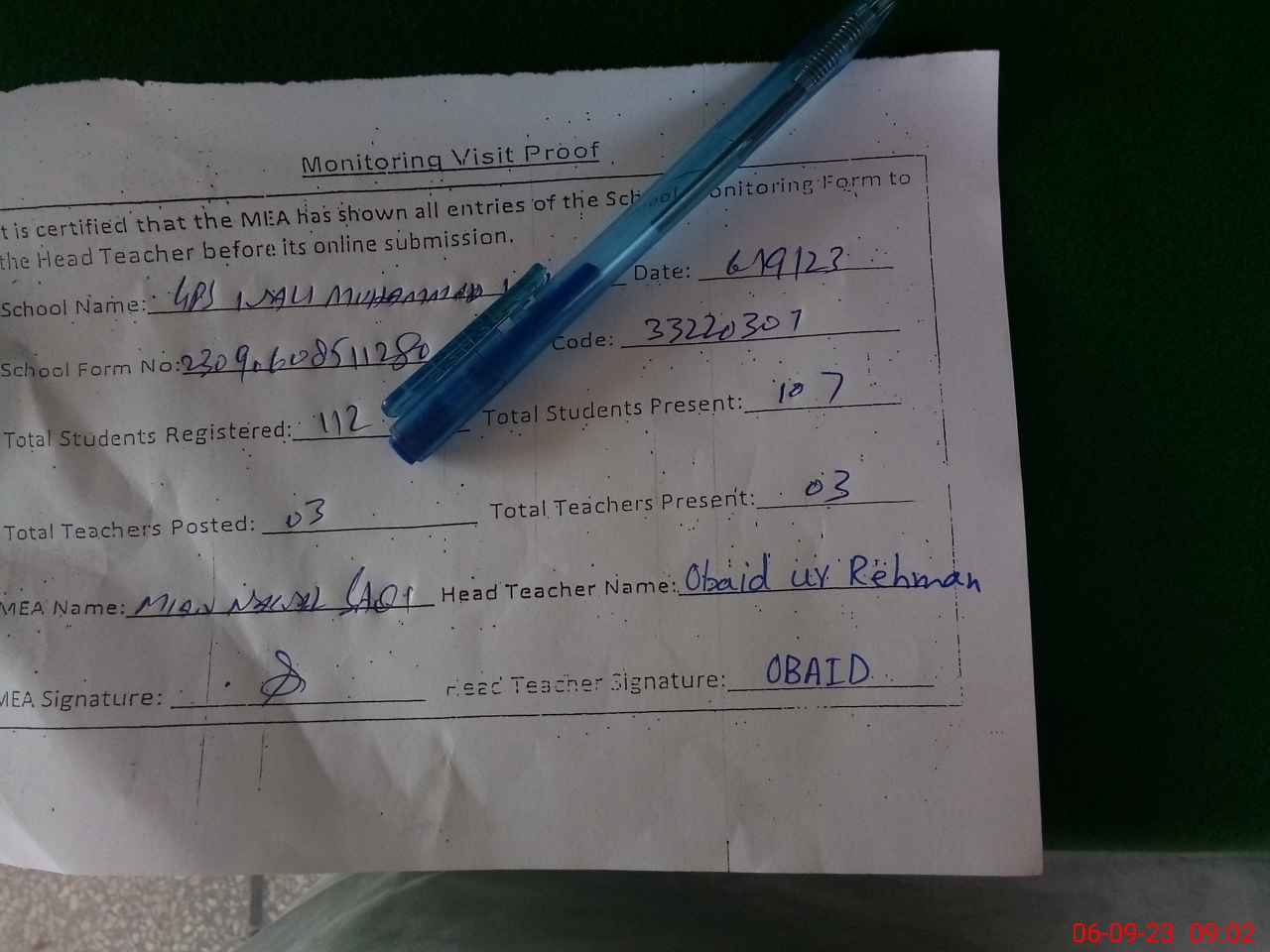 | EMIS Code: 33220307 | Name of School: GPS WALI MOHAMMAD WALA | |||