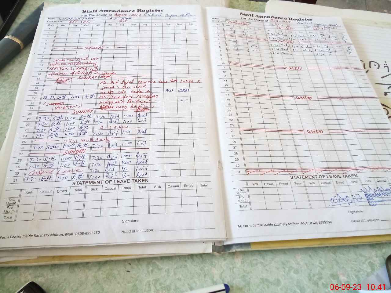| Name: Sa**** So**** Designation: (School Headmaster's/Headmistress's) HEADMASTER Phone/Cell Number: 03**** |