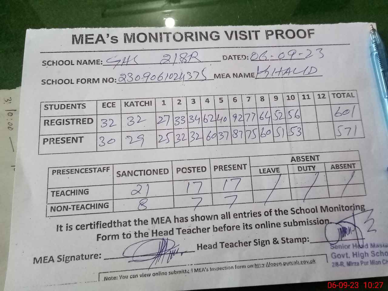 | EMIS Code: 36430028 | Name of School: GHS 2/8-R MIRZA PUR | |||