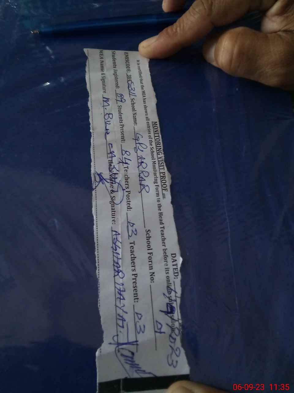 | Attendance Register | Head Teacher | MEA with School | Visit Proof |