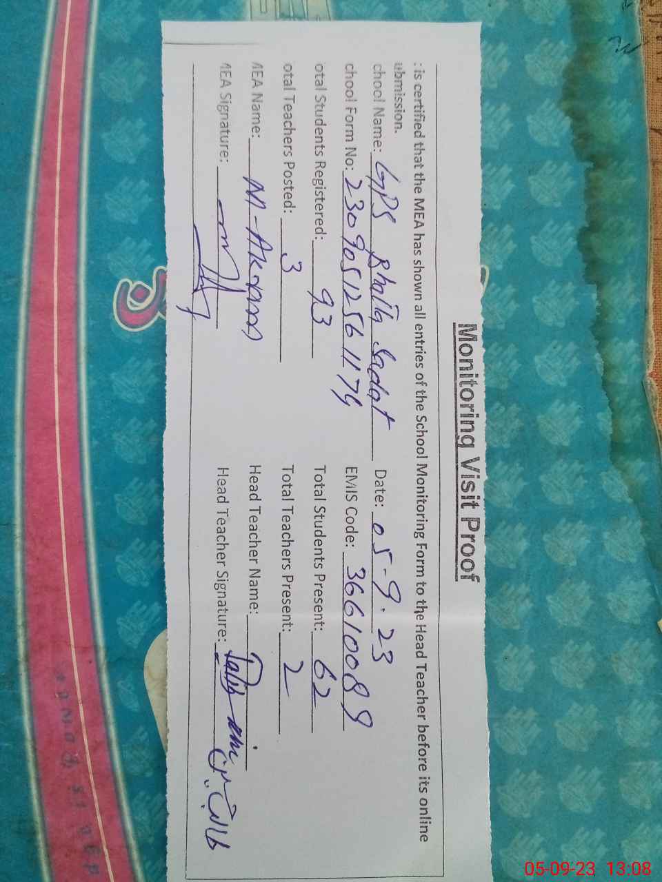 | EMIS Code: 36610089 | Name of School: GPS BATTAH SADAT | |||