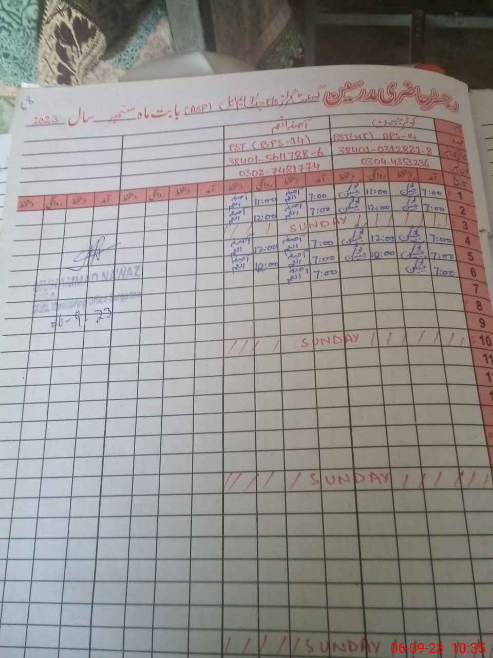 | Name: As**** An**** Designation: (School Headmaster's/Headmistress's) PST Phone/Cell Number: 03**** |