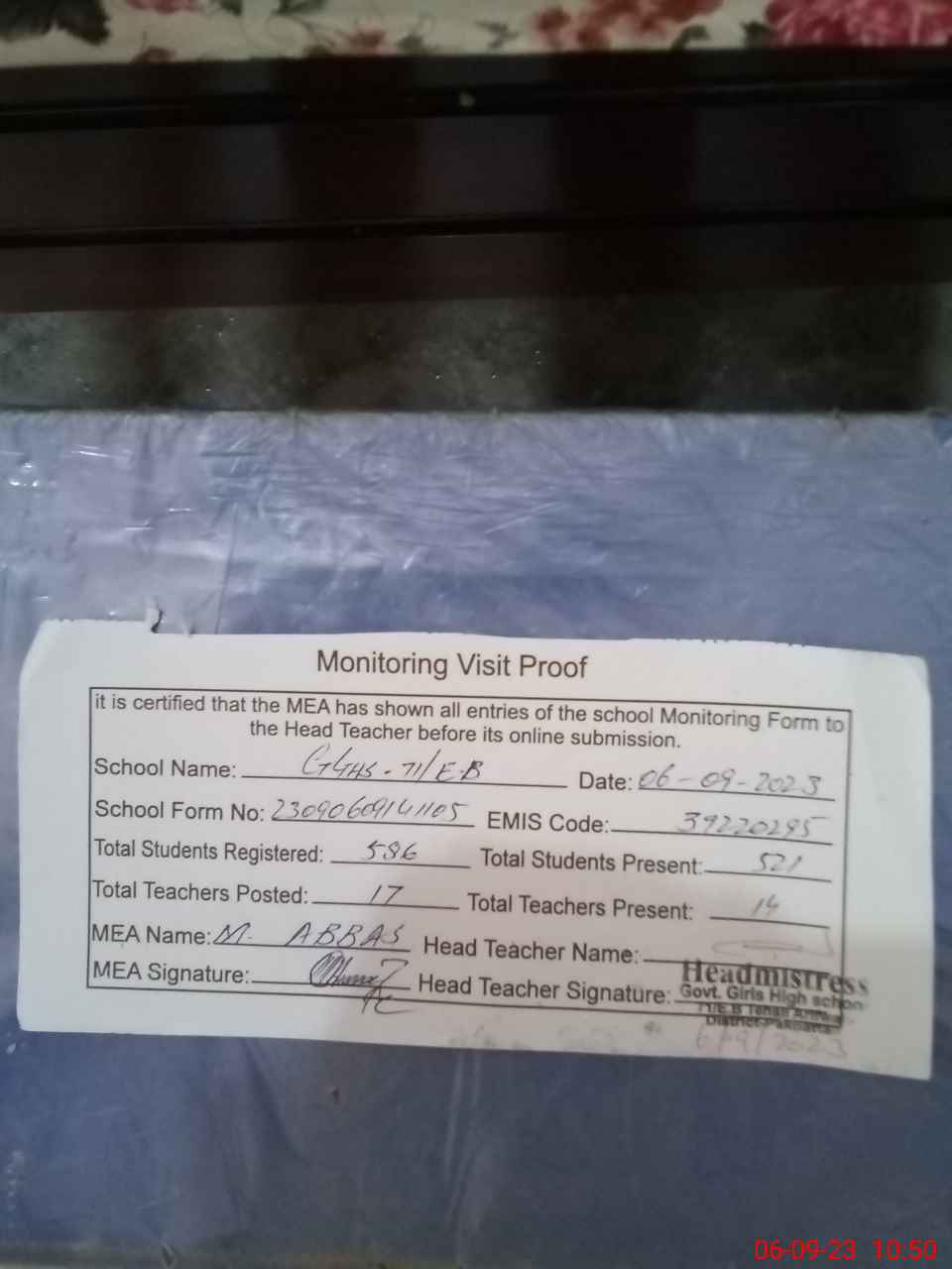 | EMIS Code: 39220295 | Name of School: GGHS 71 EB | |||