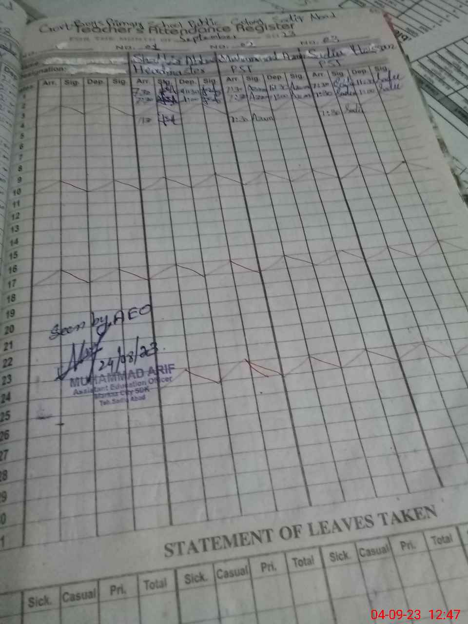 | Name: SH**** AH**** Designation: (School Headmaster's/Headmistress's) PST/PTC/JV Phone/Cell Number: 03**** |