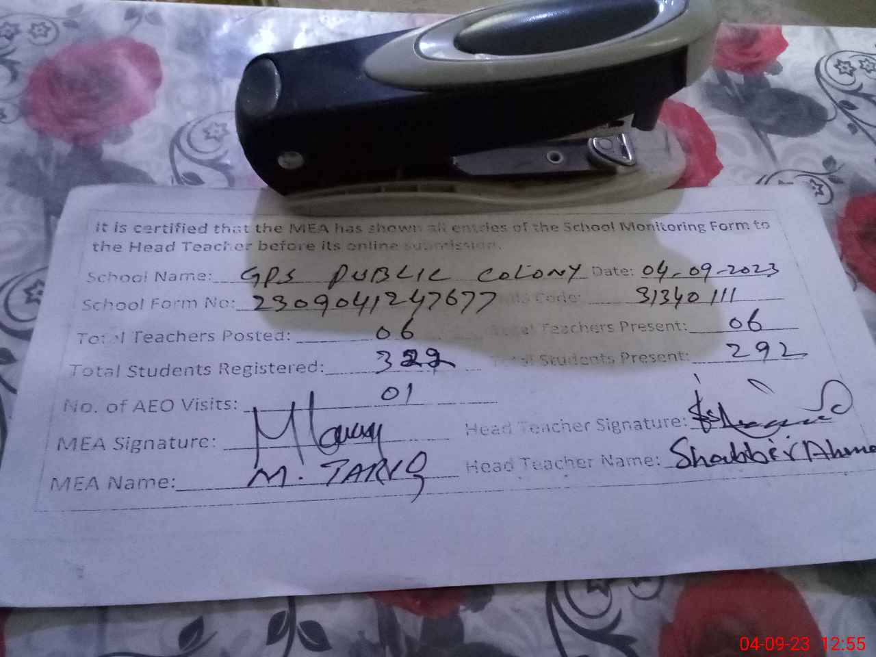 | EMIS Code: 31340111 | Name of School: GPS PUBLIC COLONY | |||