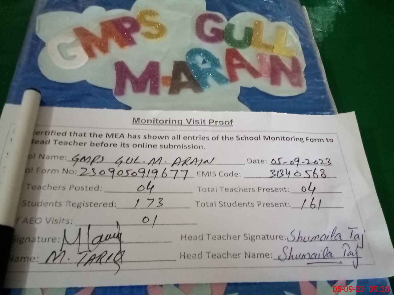| EMIS Code: 31340568 | Name of School: GMPS GUL MUHAMMAD | |||