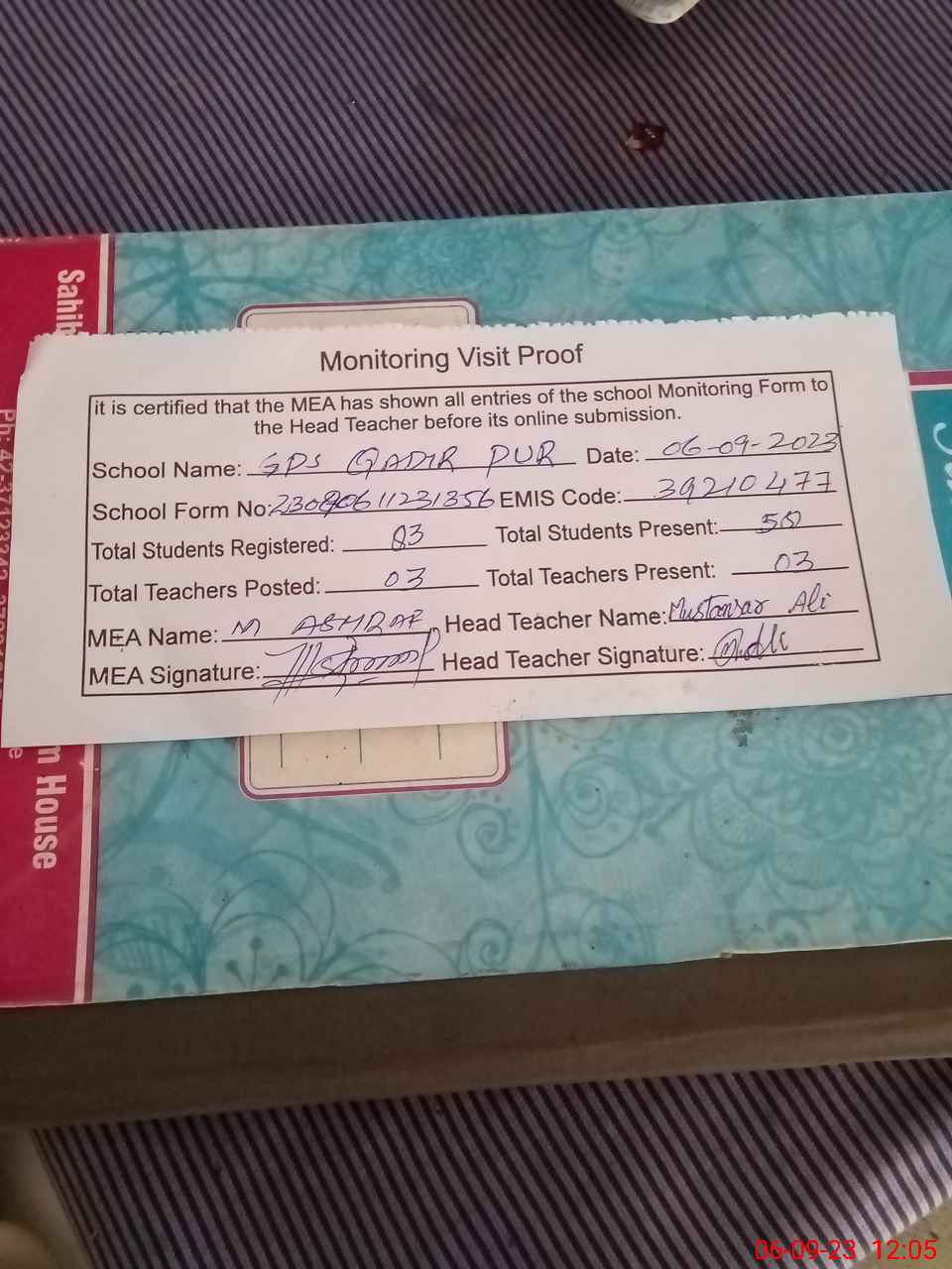 | EMIS Code: 39210477 | Name of School: GPS QADIR PUR | |||