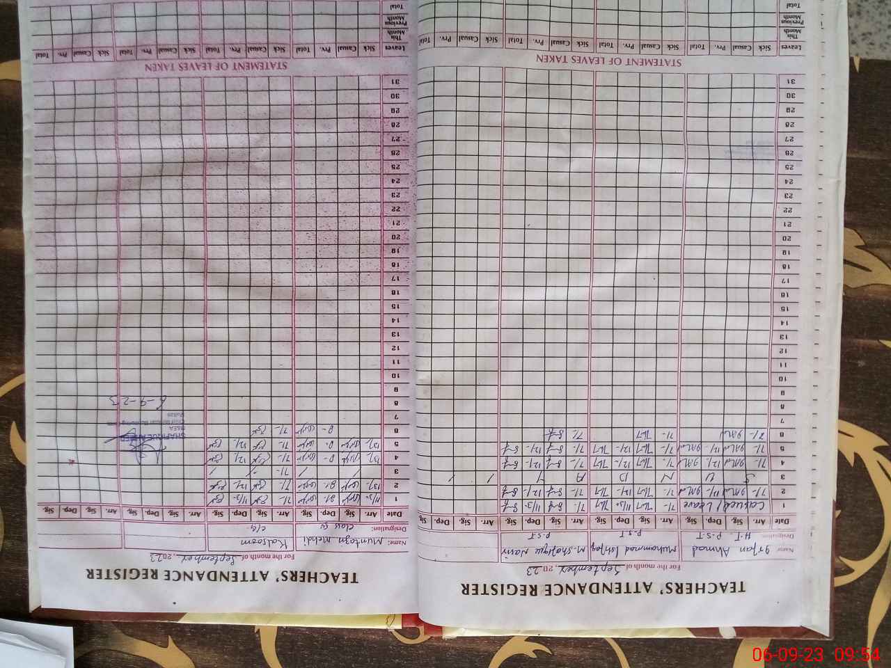| CNIC | Full Name | Designation | R/C | Absence During Last Calender Month |