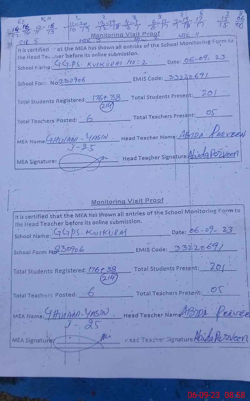 | EMIS Code: 33220691 | Name of School: GGPS KULKURAI NO. 2 | |||