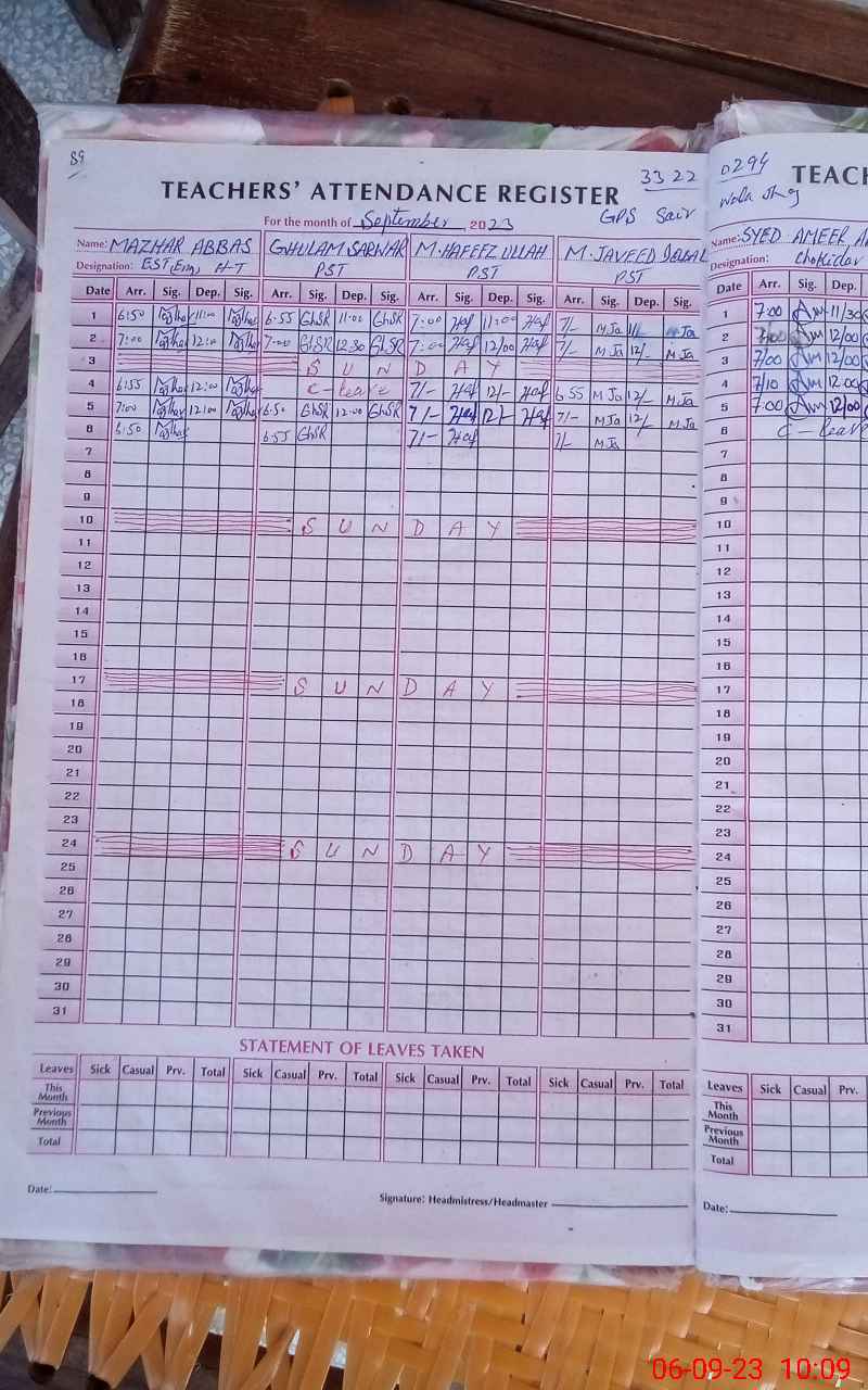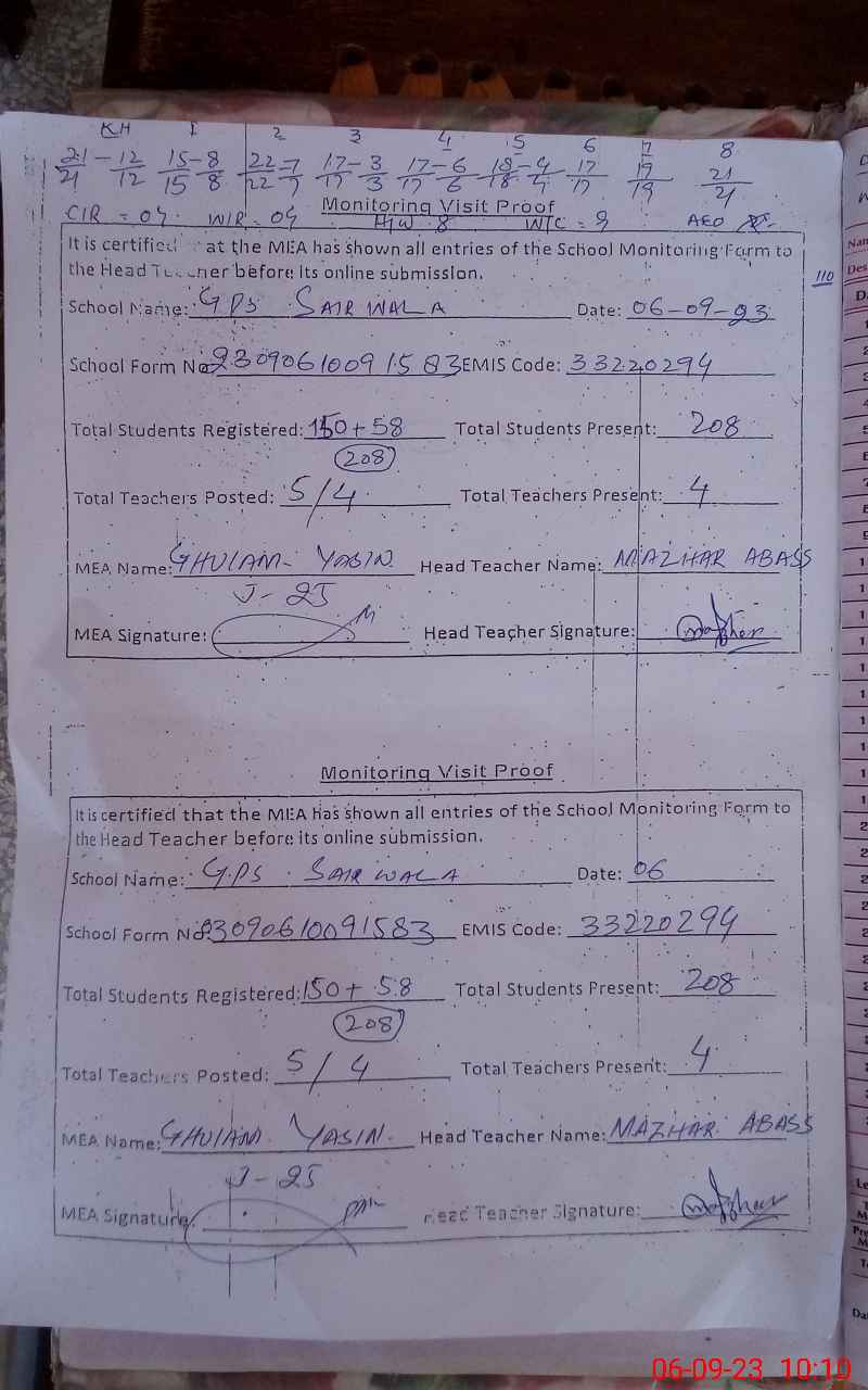 | EMIS Code: 33220294 | Name of School: GPS SAIR WALA | |||