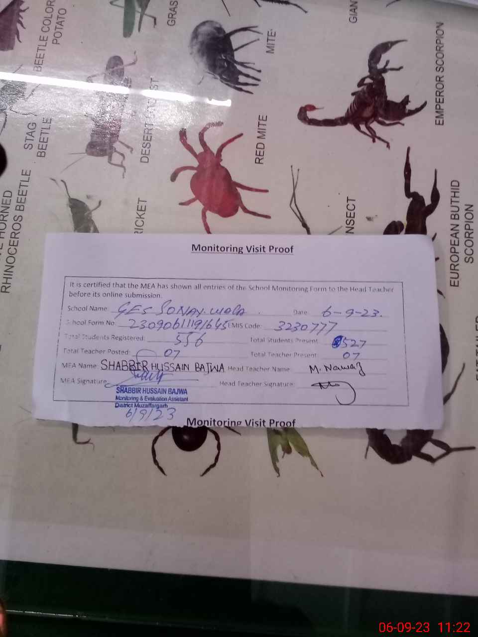 | Attendance Register | Head Teacher | MEA with School | Visit Proof |