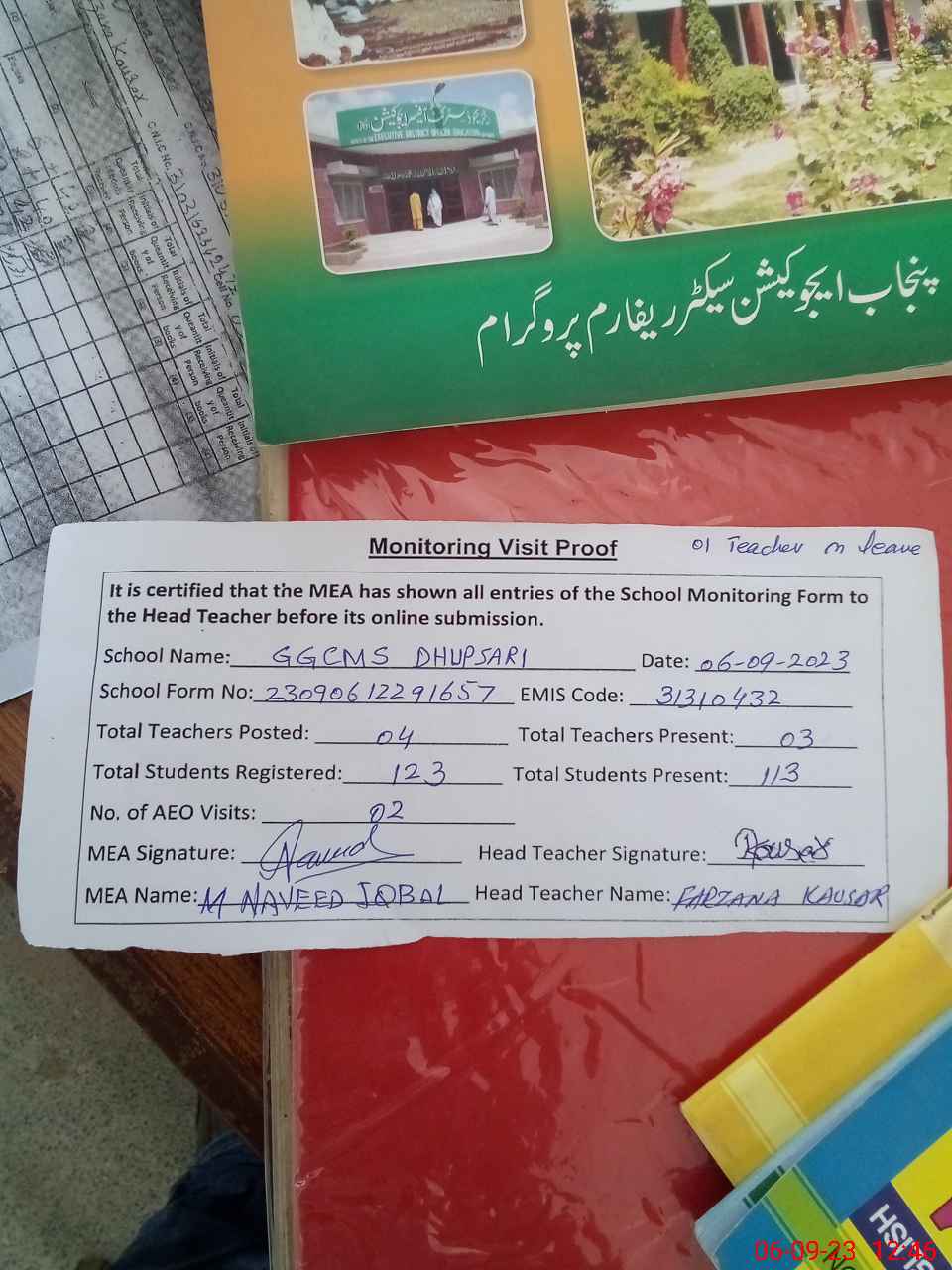 | EMIS Code: 31310432 | Name of School: GGCMS DHUPSARI | |||