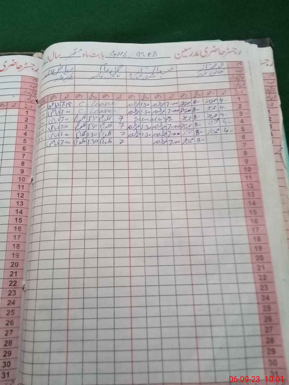 | CNIC | Full Name | Designation | R/C | Absence During Last Calender Month |