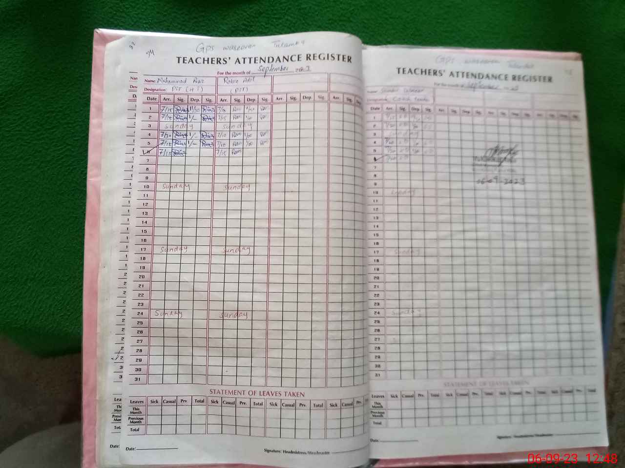 | Name: MU**** RI**** Designation: (School Headmaster's/Headmistress's) PST Phone/Cell Number: 03**** |