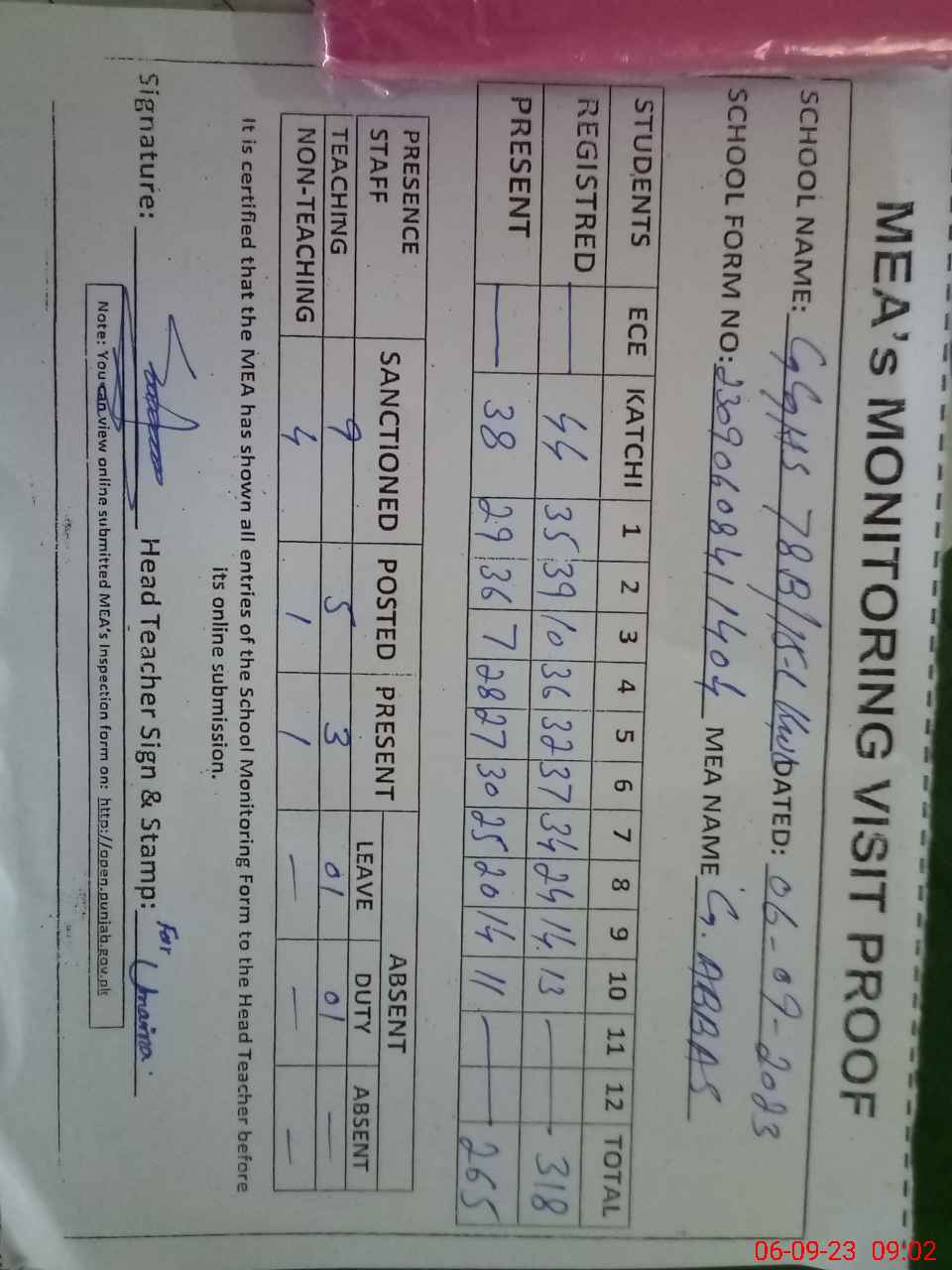 | EMIS Code: 36420656 | Name of School: GGHS 78-B/15-L, KACHA KHUH | |||