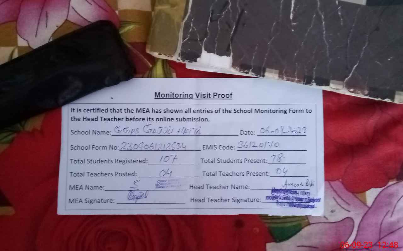 | EMIS Code: 36120170 | Name of School: GGPS GAJJU HATTA SHUJABAD | |||