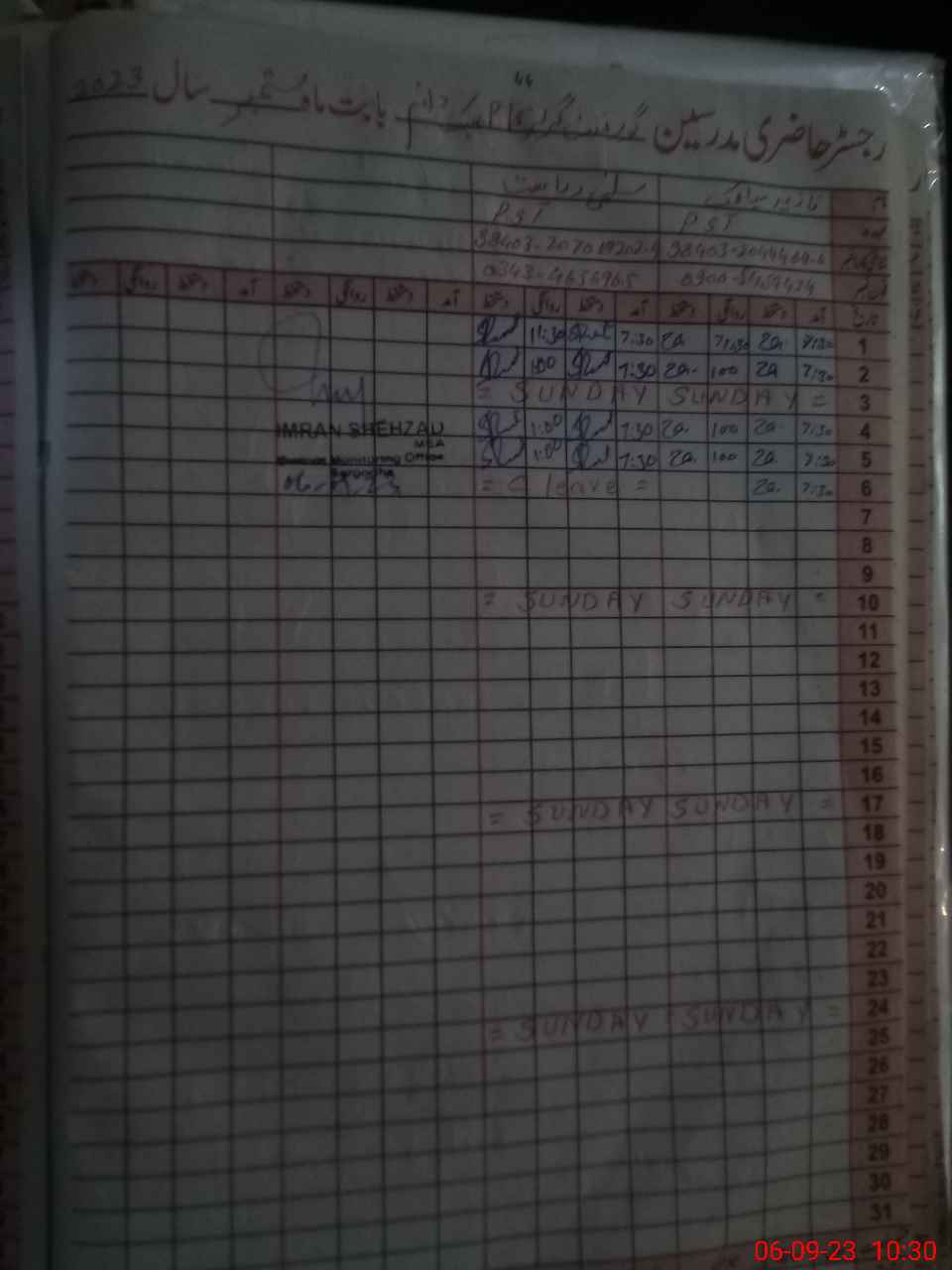 | Name: NA**** MU**** Designation: (School Headmaster's/Headmistress's) PST Phone/Cell Number: 03**** |