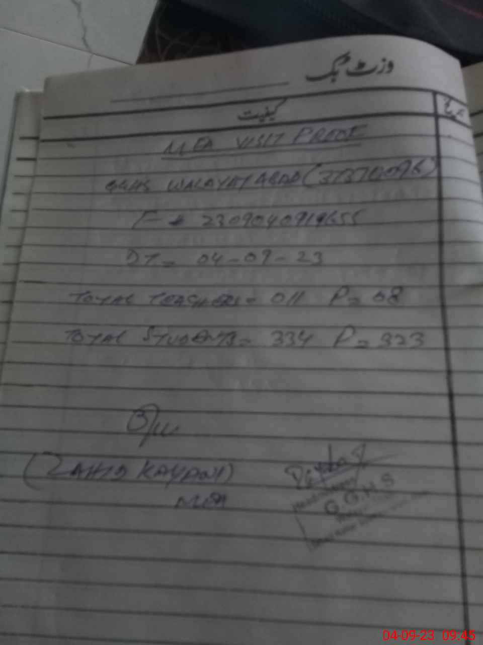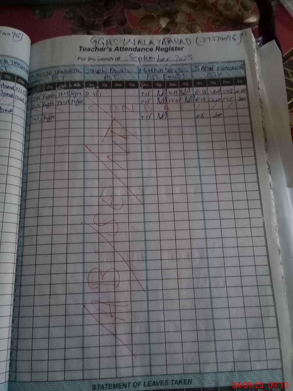 | Remarks (Use Separate Page if Required): Miss zainab pervez cnic no 3740706075252 est absent from school without leave wef 24 Feb 2023 | |||||