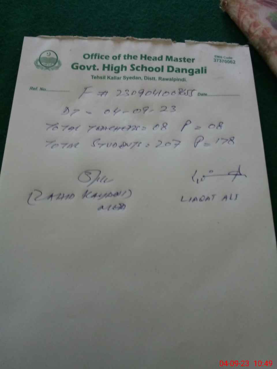 | EMIS Code: 37370062 | Name of School: GHS DANGALI | |||